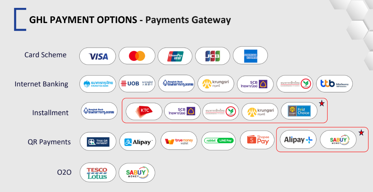 Various online payment methods are available today; these include bank transfers through mobile applications, credit/debit card payments, PromptPay QR Payment, and e-Wallets. GHL's online payment services cover the following channels:
